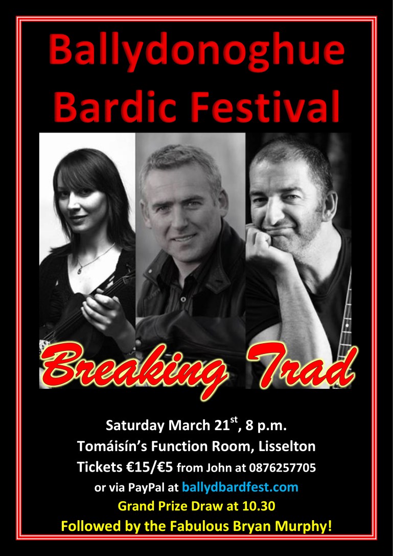 Breaking Trad Tickets for a date to be arranged (Covid permitting!) Please pay here for Breaking Trad Tickets which can be collected at the door on the night Tickets are €15 each You do not require a Paypal Account Share this: Click to share on X (Opens in new window) X Click to share on Facebook (Opens in new window) Facebook Like Loading...
